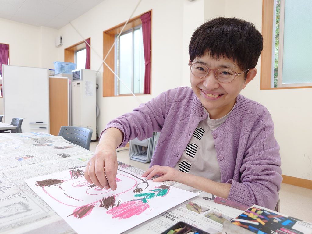 絵の具や色鉛筆などさまざまなものを使い、アート活動をたのしまれていました。