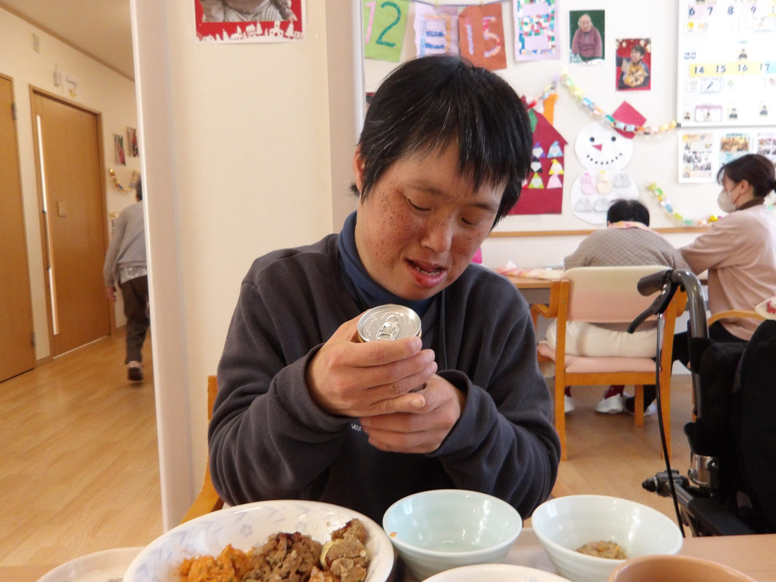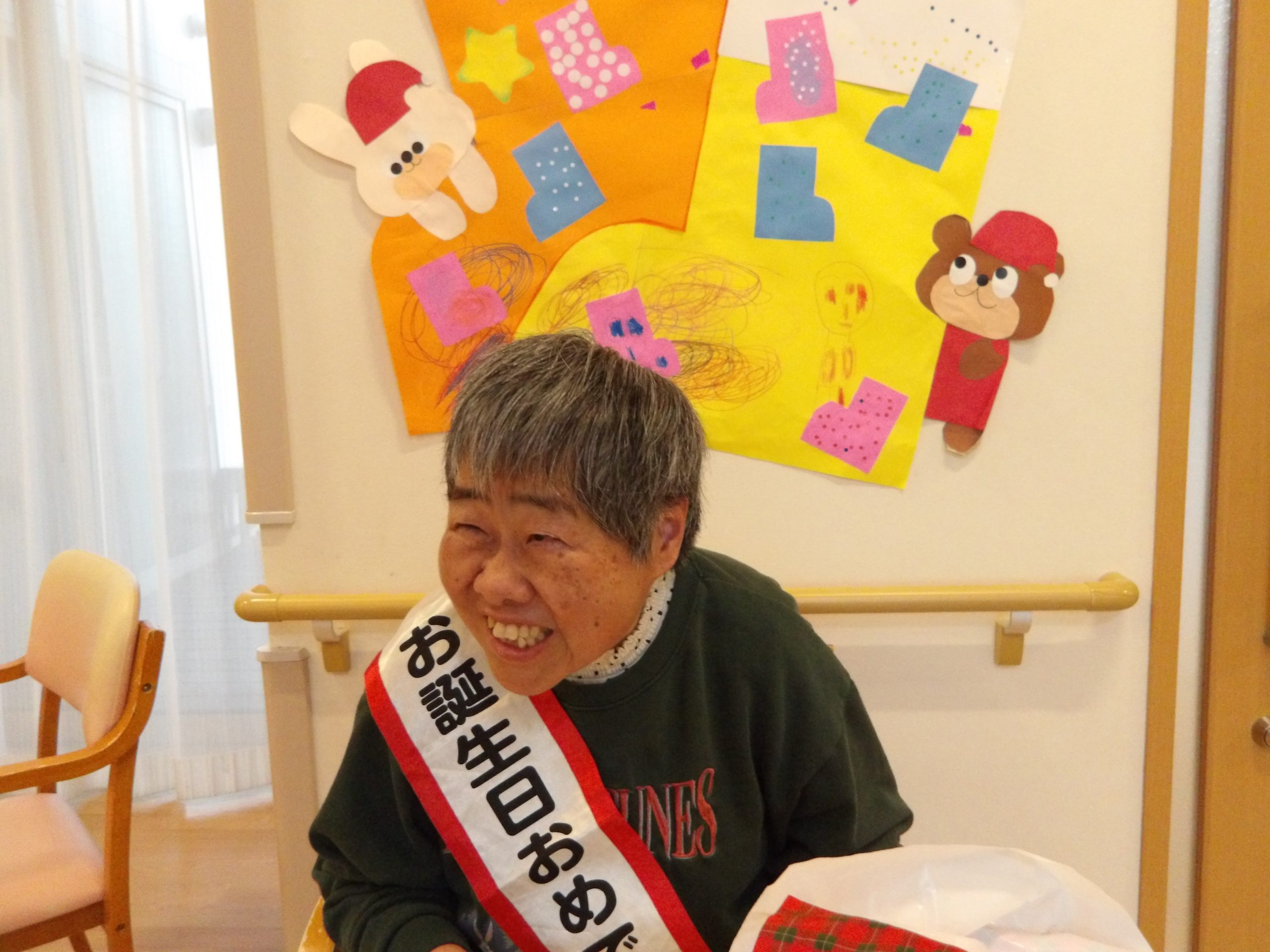 誕生会では12月生まれの利用者のみなさんをお祝いし、ホットドッグやハンバーグを美味しく頂きました。