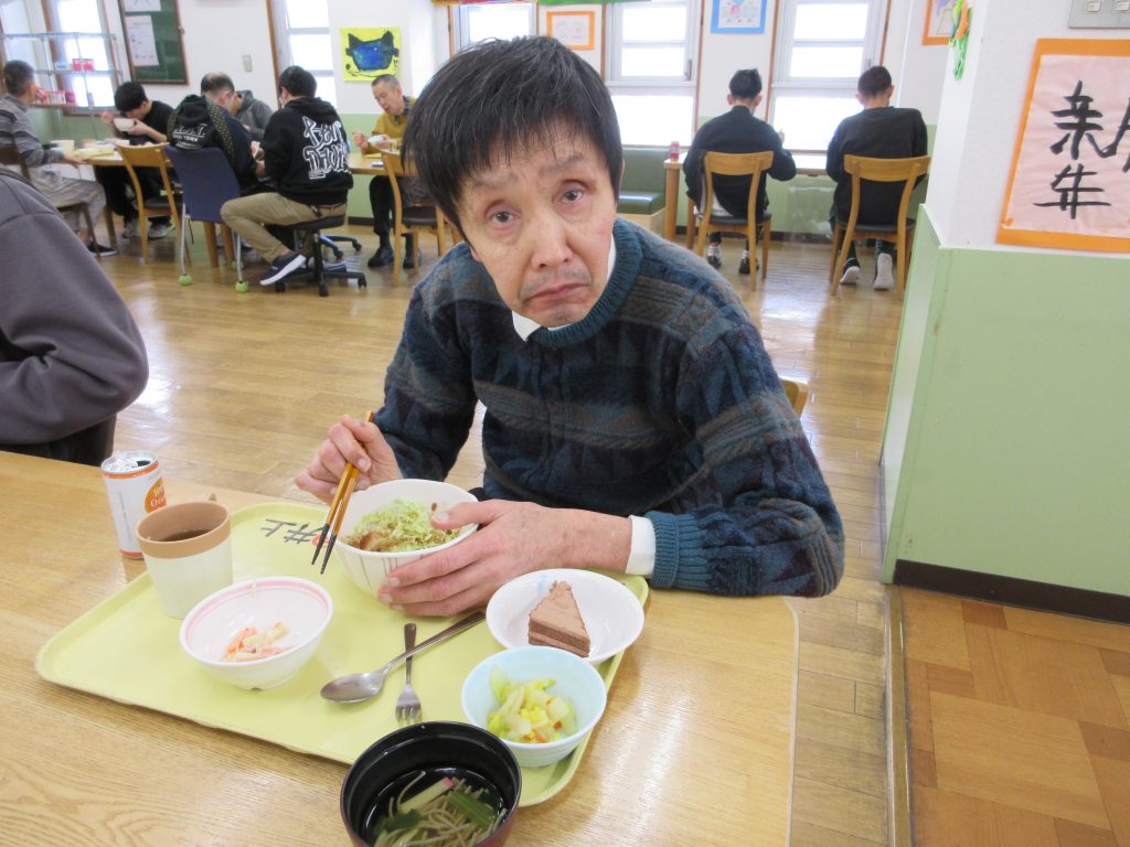 そして今月の誕生日メニューの発表。ソースカツ丼やマカロニサラダ、そば汁、チョコケーキと盛り沢山でした。利用者の皆さんに食べたいものを聞いてみると、「オムライス」「うどん」「ケーキ」などたくさんのリクエストが。