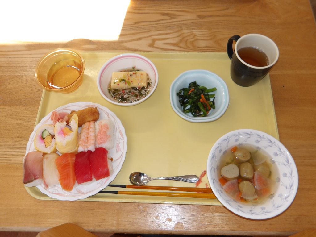 昼食は、寿司イベントとして、握り寿司が出ました。