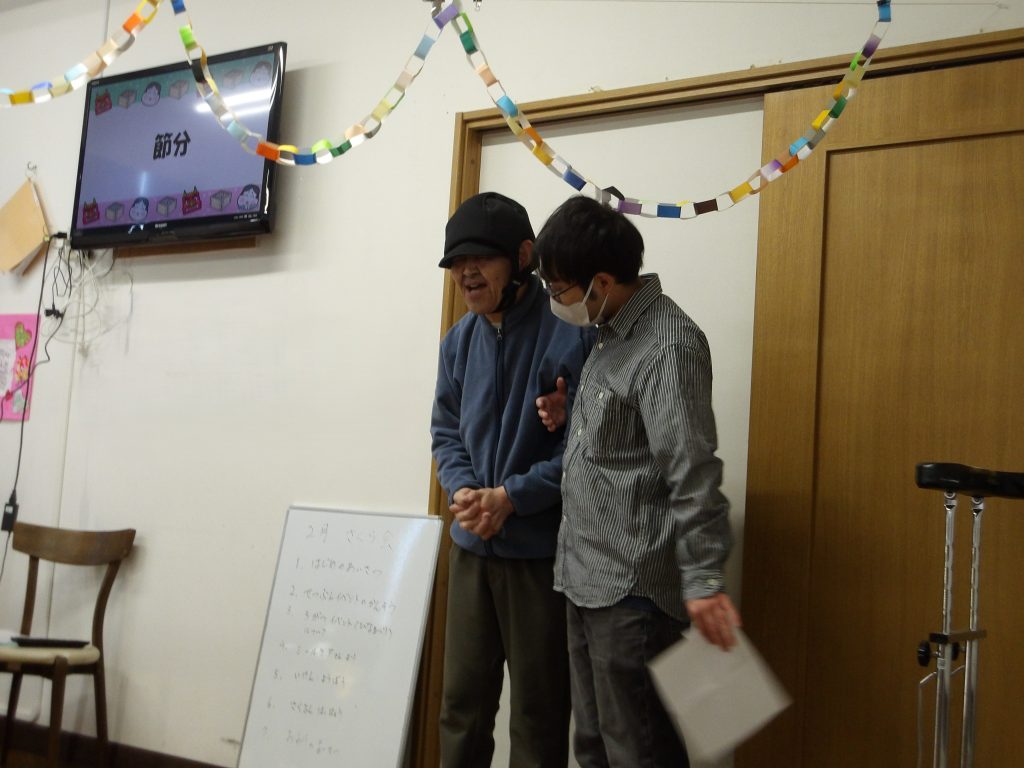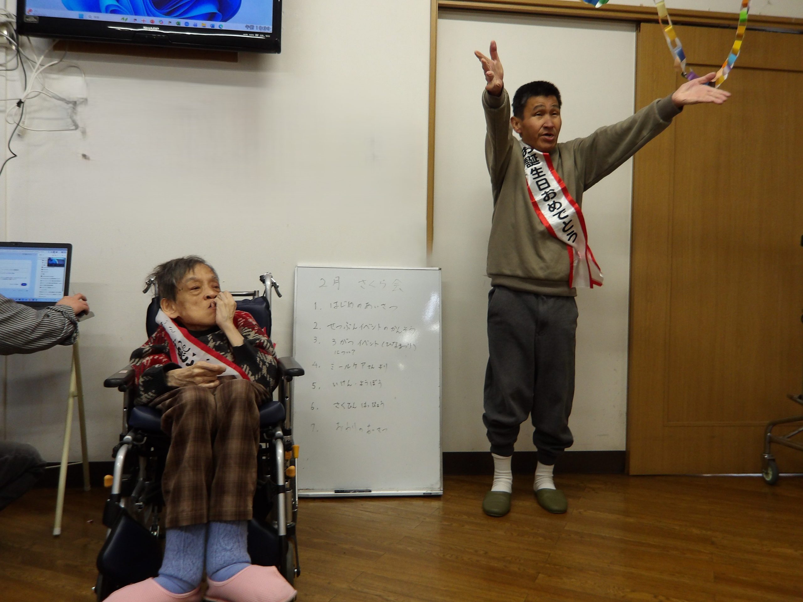 さくら会では、先日行われた節分の感想と、来月の行事であるひな祭りについての説明がありました。