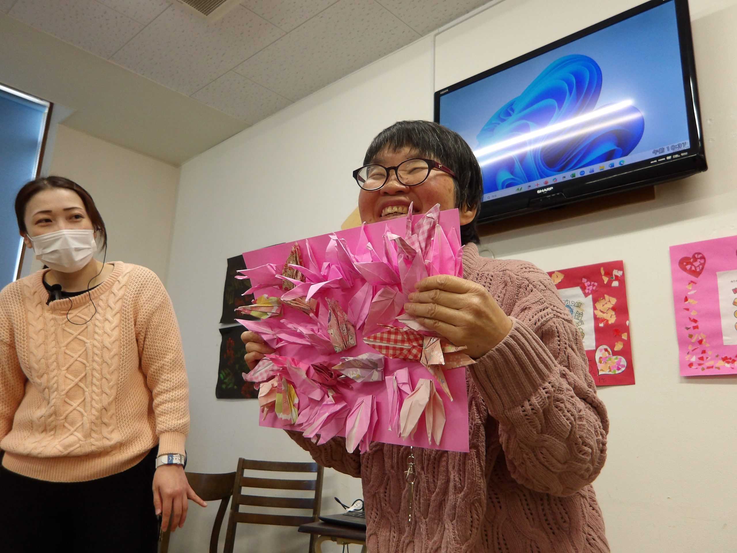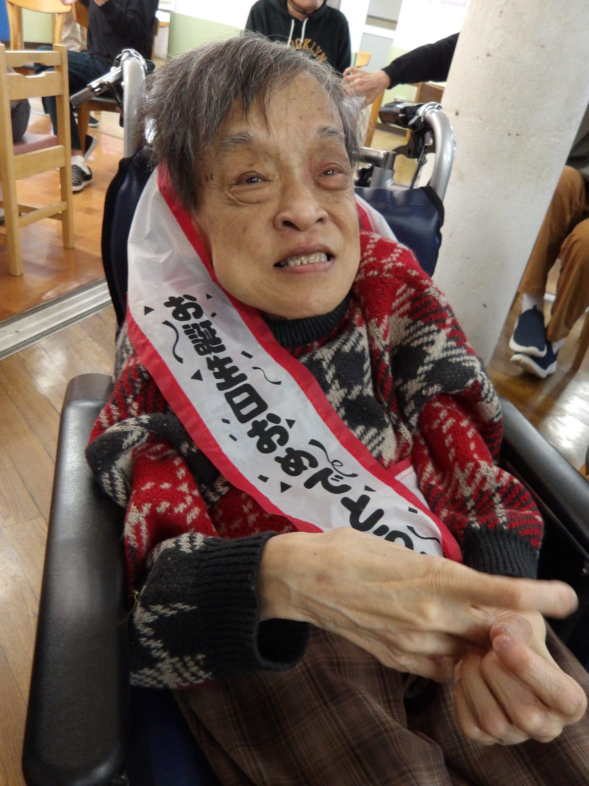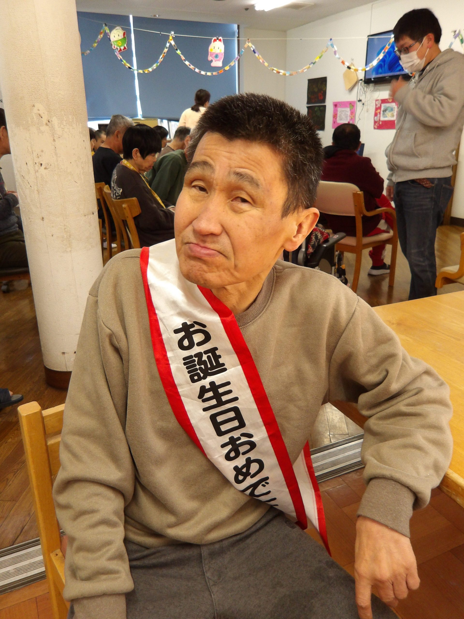 誕生会では、今月お誕生日を迎えられた利用者さんが前に出て、プレゼントを嬉しそうに